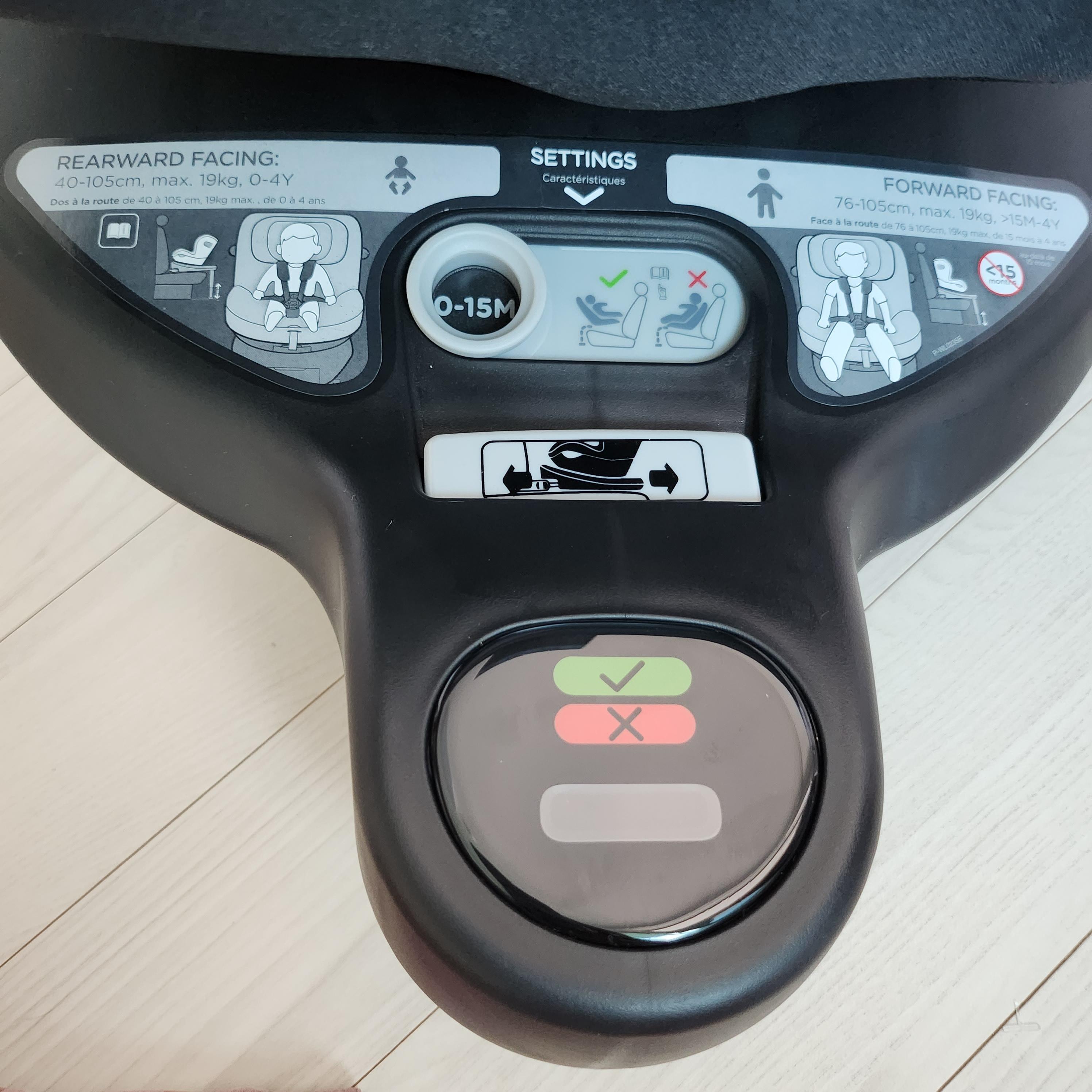 0~15개월의 경우 뒤보기를 하여 앞보기 잠금장치로 설정이 되고