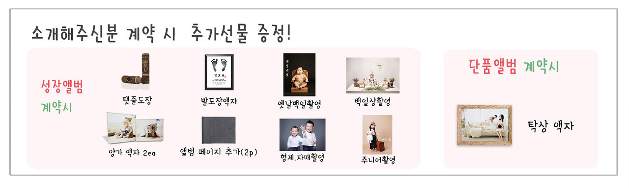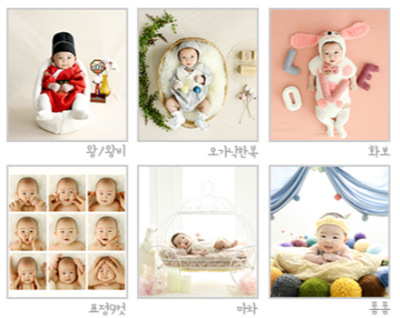 백일2컨셉, 돌2컨셉+가족사진으로 구성되어있고
