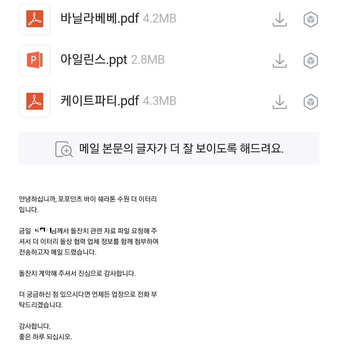 담당자님이 메일로 돌상업체 정보를 보내주셨고