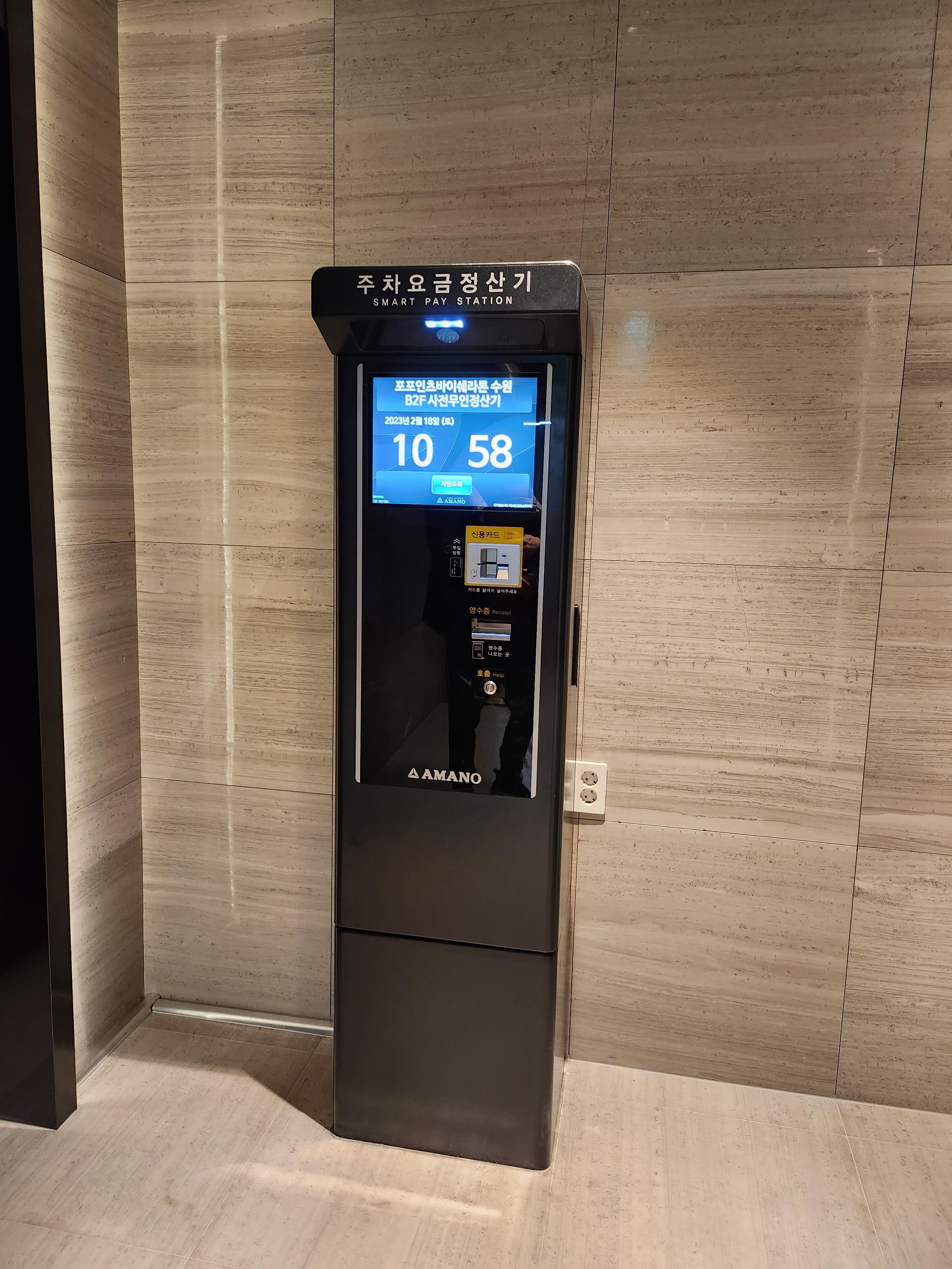 주차요금 정산기도 설치되어있다(주차 3시간 무료)