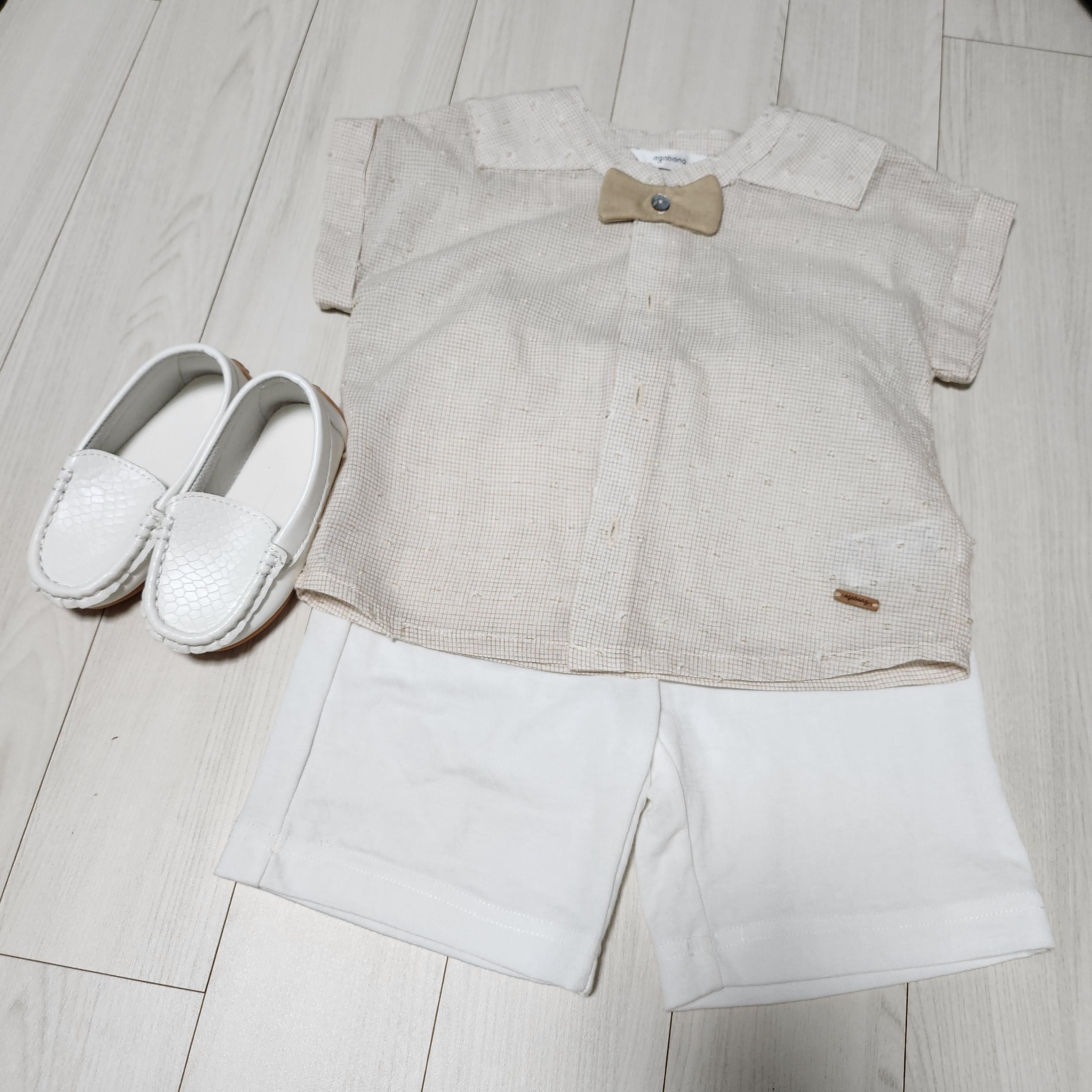 아기한복은 돌상업체에서 대여했고, 사복은 보타이가 달린 깔끔한 상하복으로 준비