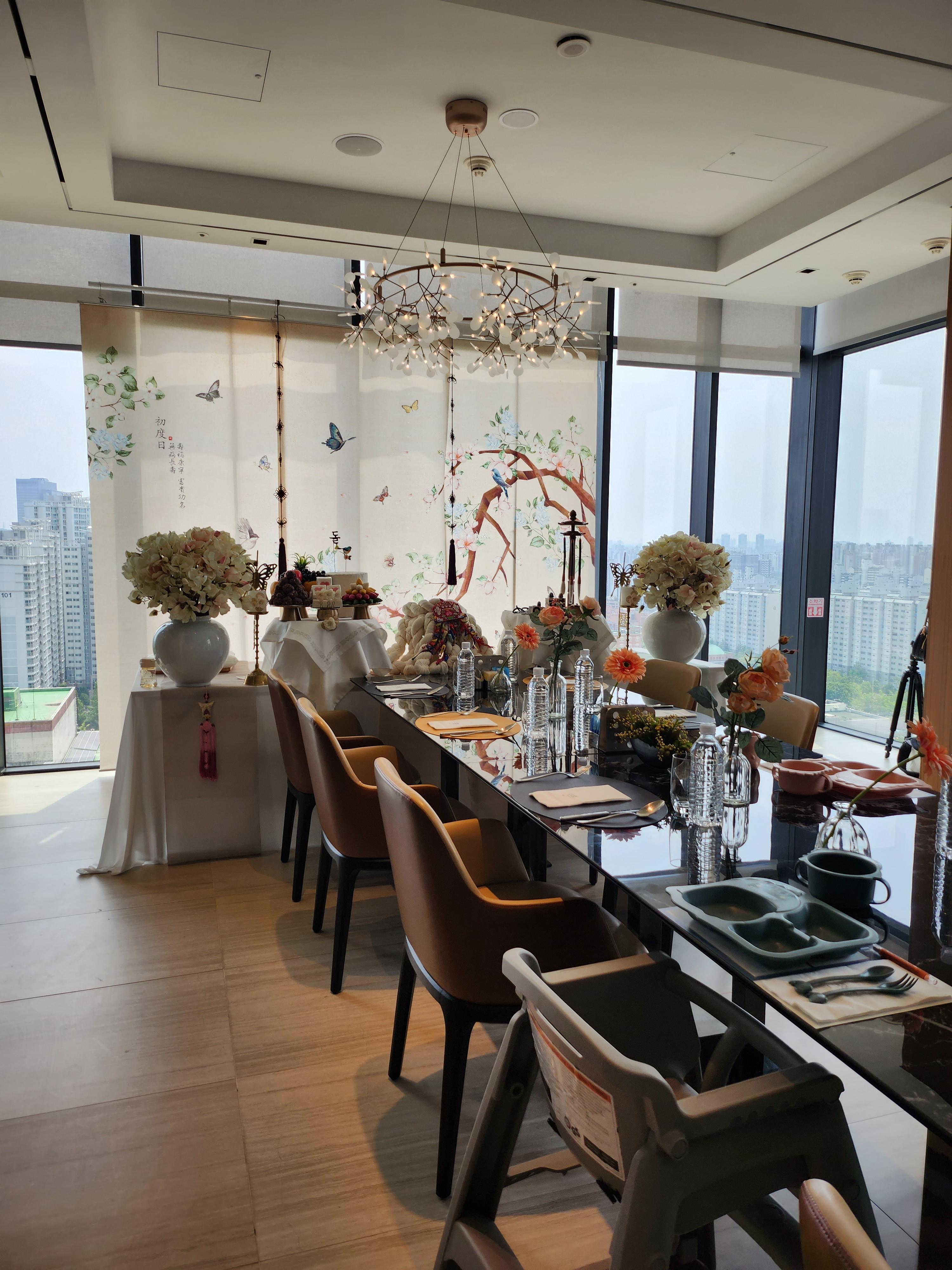 룸 하나만 쓰기에 돌상이 들어가면 좁아서 1+2룸 두룸을 합쳐서 쓰기로