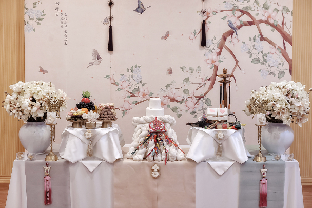 현대상의 꽃장식은 돌잔치가 아닌 웨딩 느낌이라 전통상으로 선택했다
