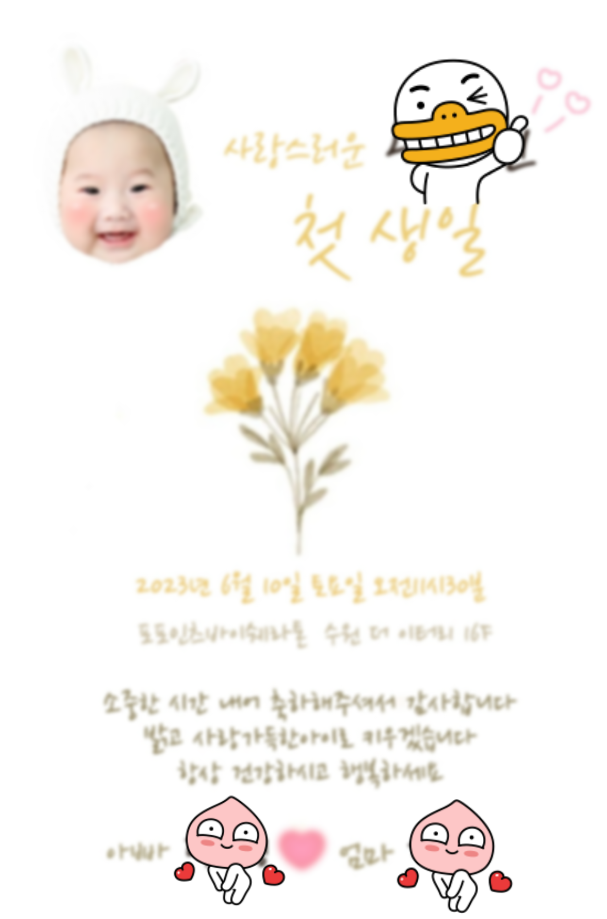 굳이 필요없을 거라고 생각했는데 소규모라도 가족들에게 장소 시간을 안내해드려야했기때문에 핸드폰으로 급히 샤샥 만들었음