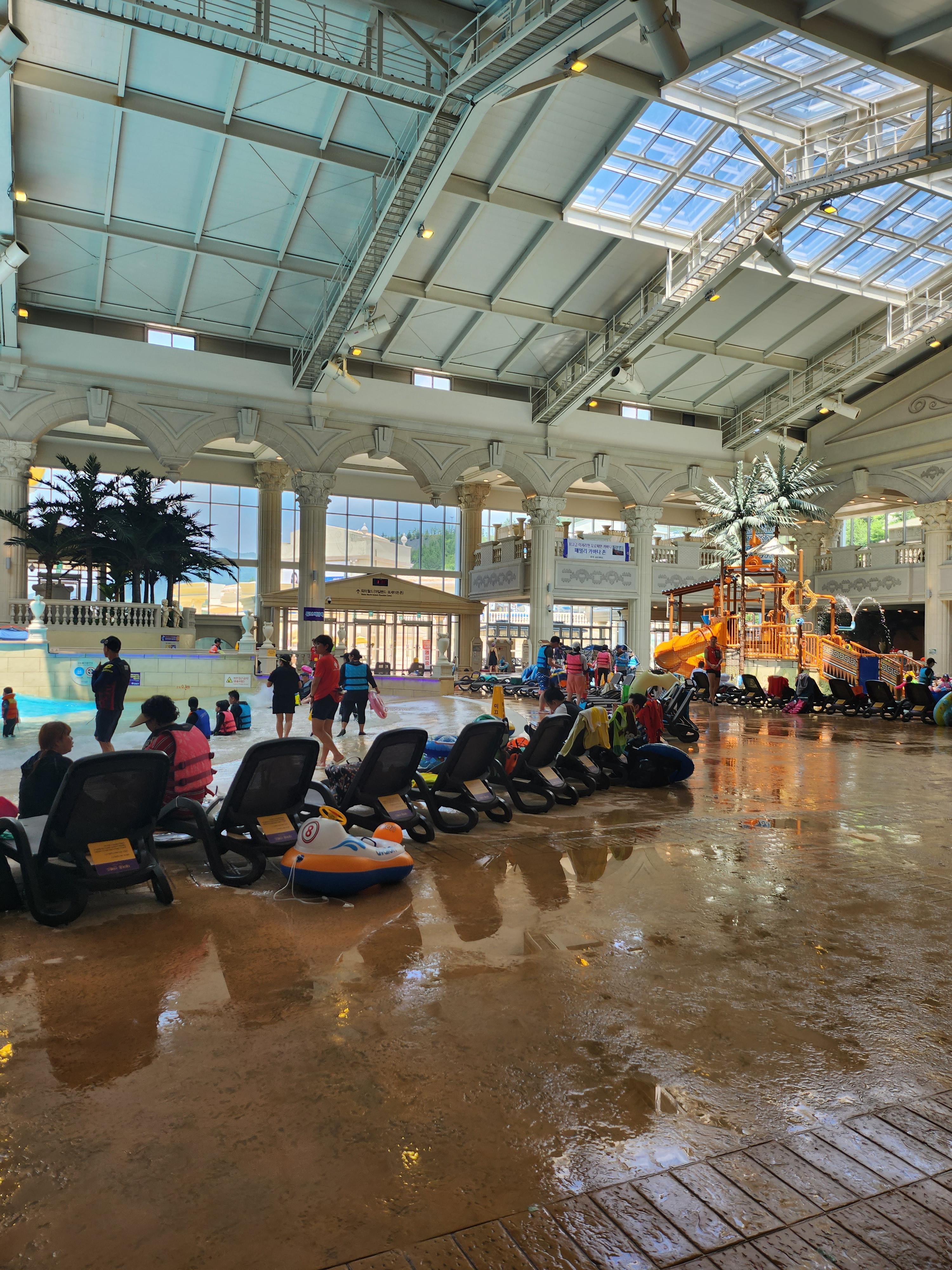 실내에는 어린아이들도 이용할 수 있는 파도풀과 유수풀 등 다양한 풀이 있어서