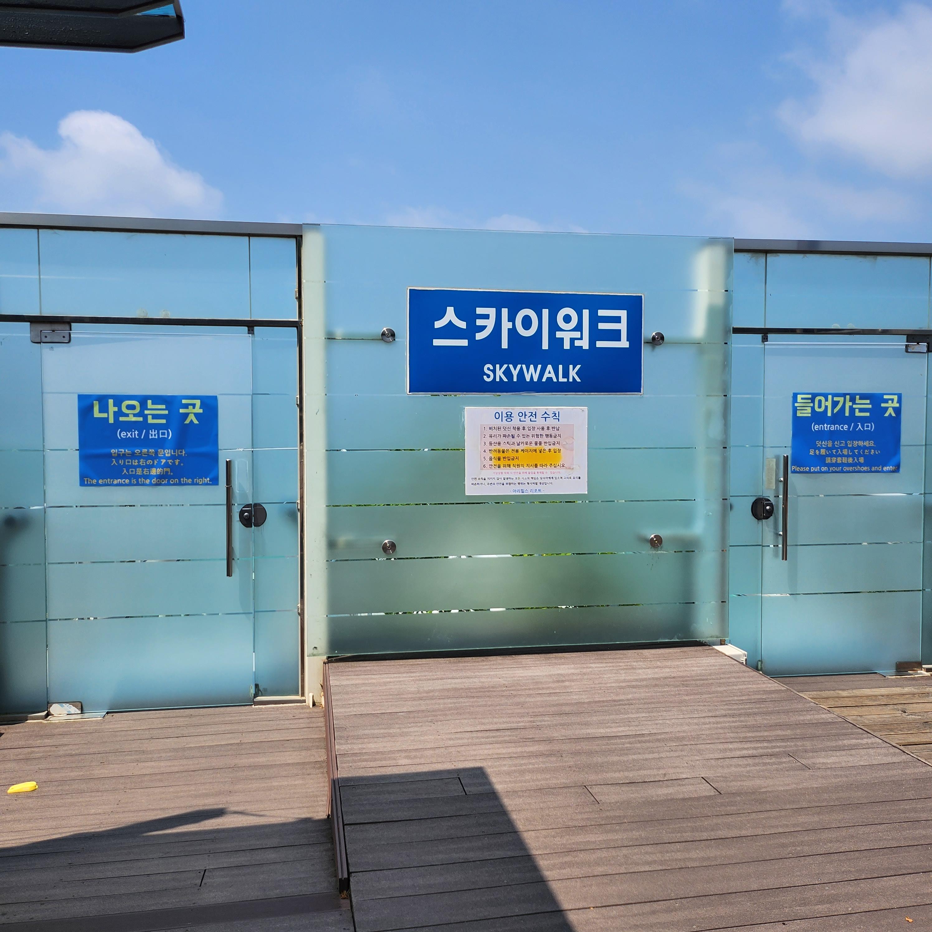 입구 매표소에서 표를 사고 스카이워크 입장 시 덧신을 신고 입장하면 된다