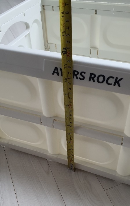 이 폴딩박스의 가로사이즈는 대략 52센치 정도 되어 보이네요. 중국산 다이소에서 산 자라 오차가 있을 수도 있습니다. 사진이 좀 흐릿하게 나와서 죄송합니다.