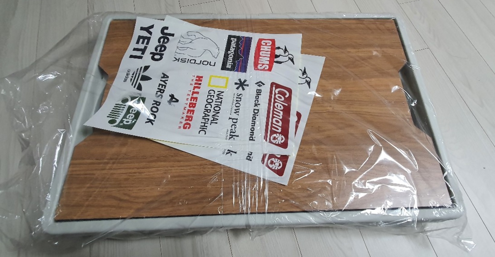 폴딩박스를 열어보면 스티커와 박스 그리고 상판이 보입니다. 스티커는 붙이고 싶었지만 지저분 해 보일 것 같아서 붙이지는 않았습니다.
