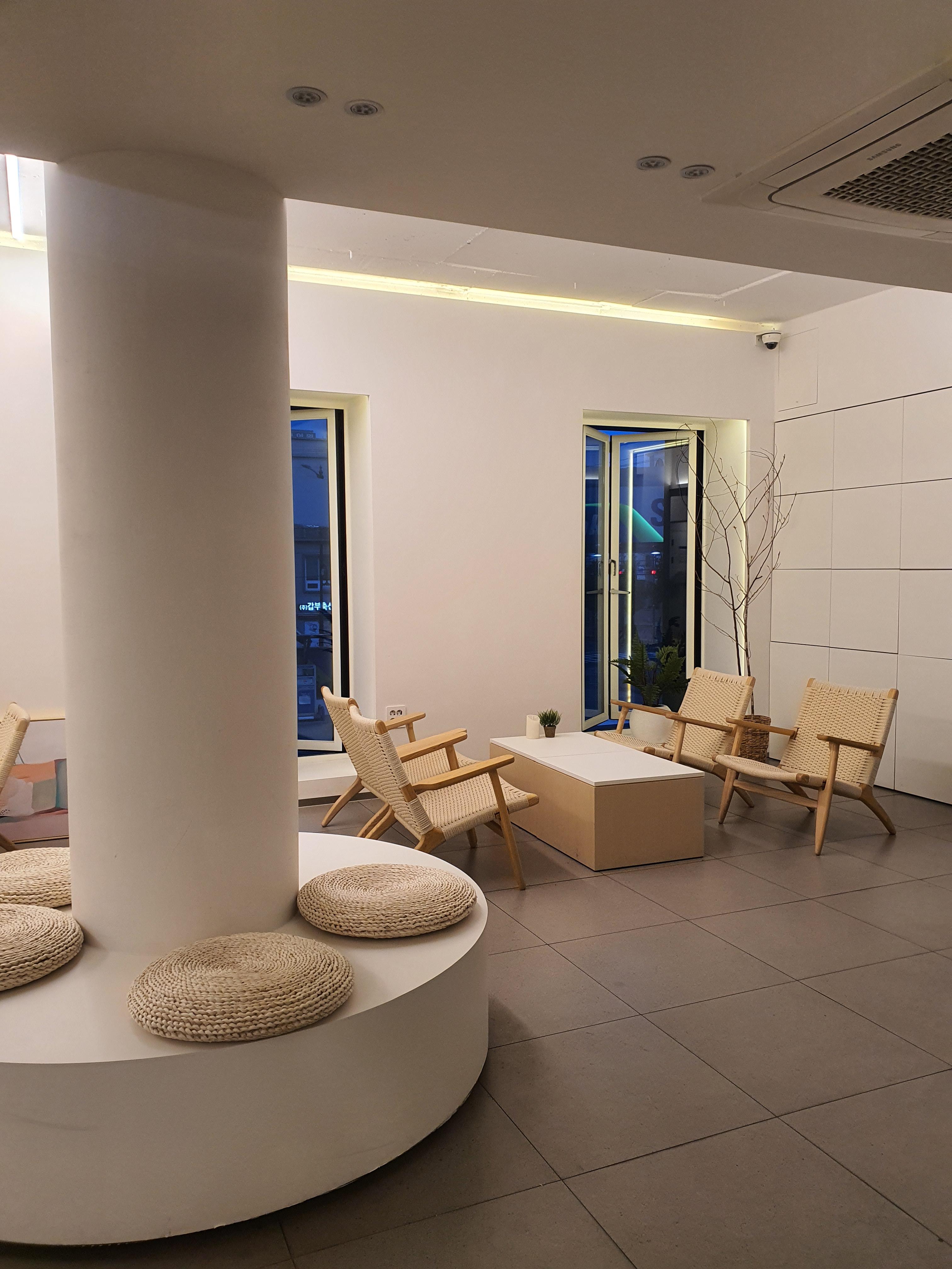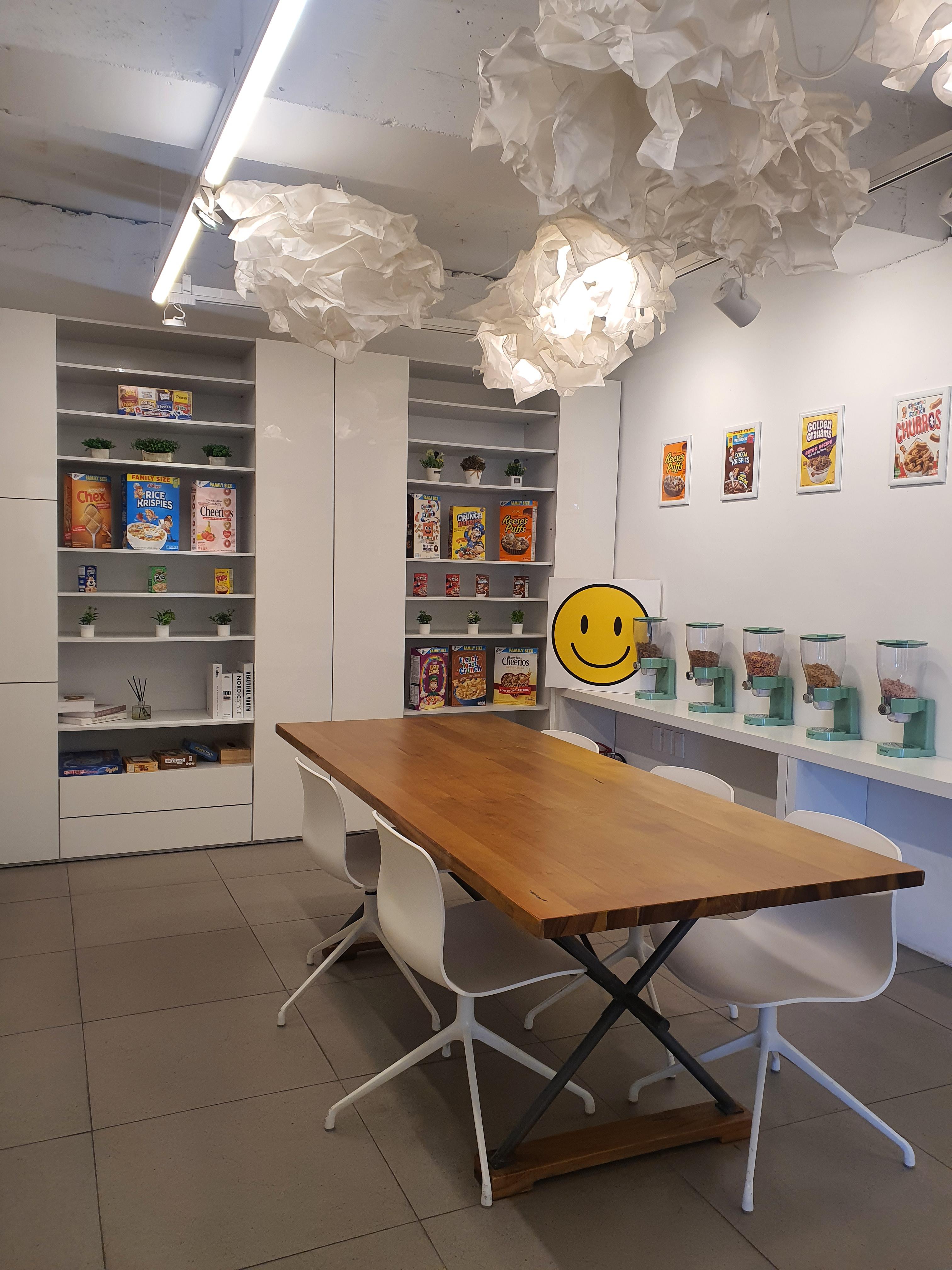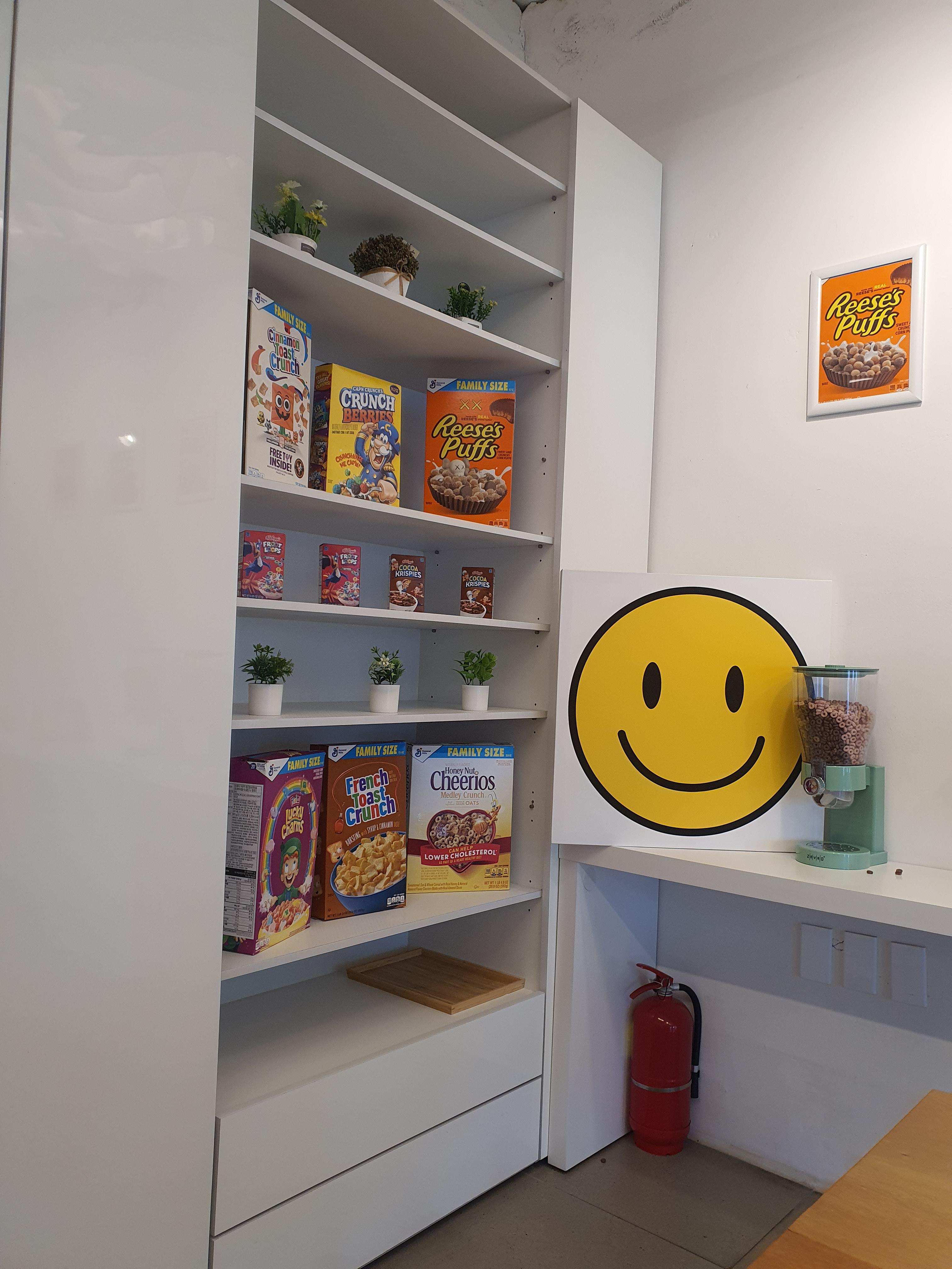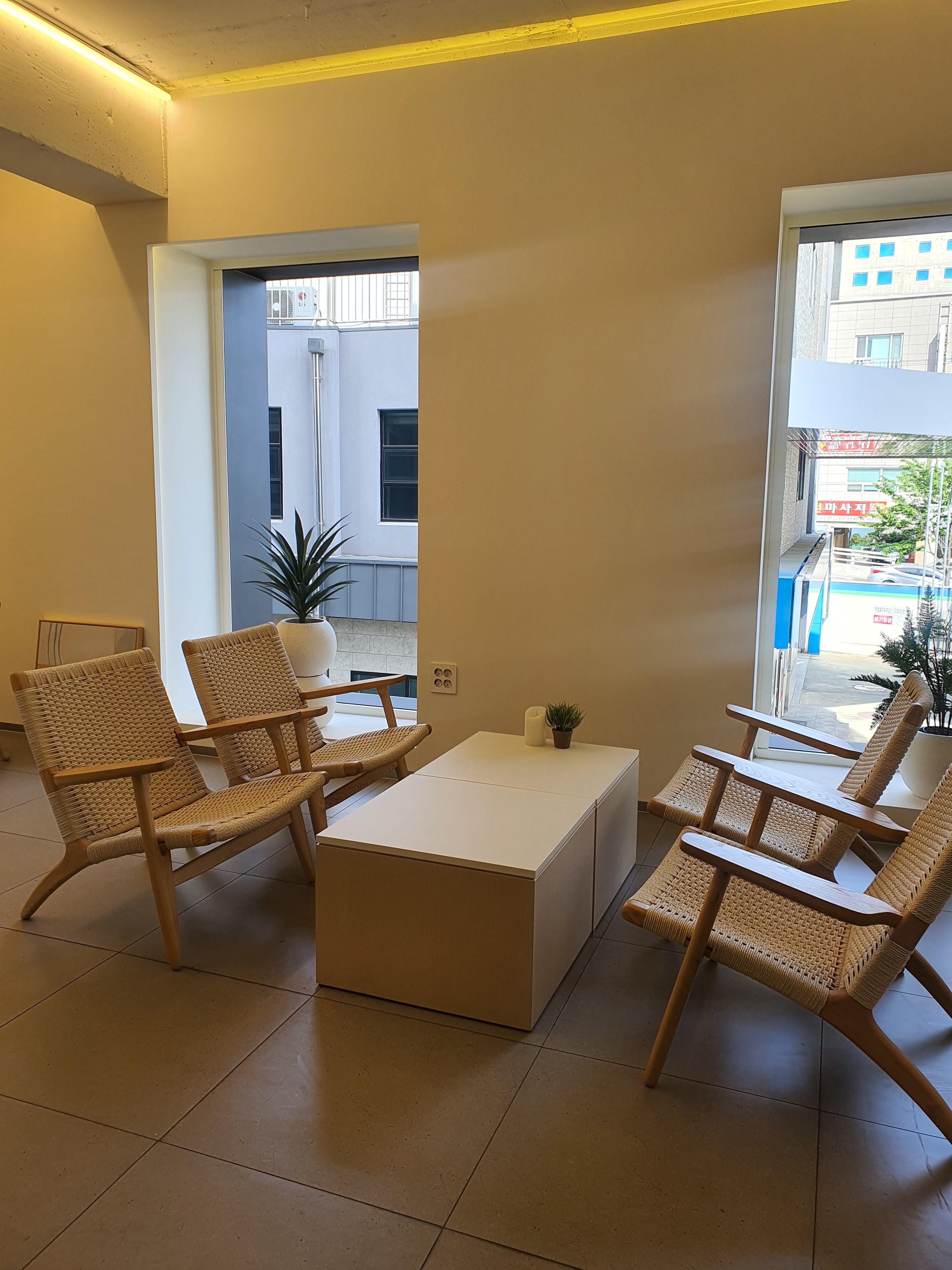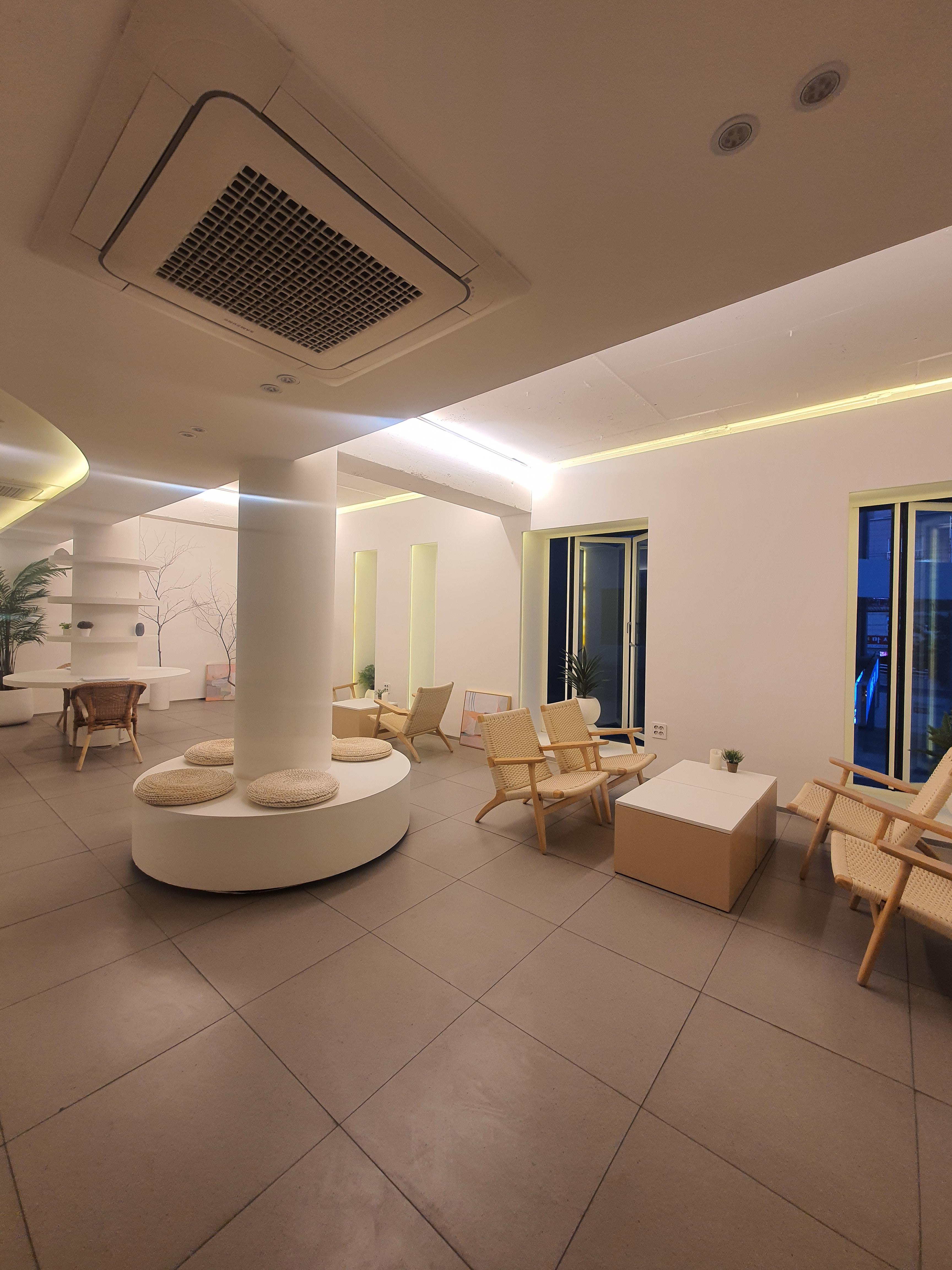 체크인 카운터와 함께 2층의 휴식공간, 조식(시리얼)을 먹을 수 있는 시리얼룸 또한 매우 깨끗했습니다