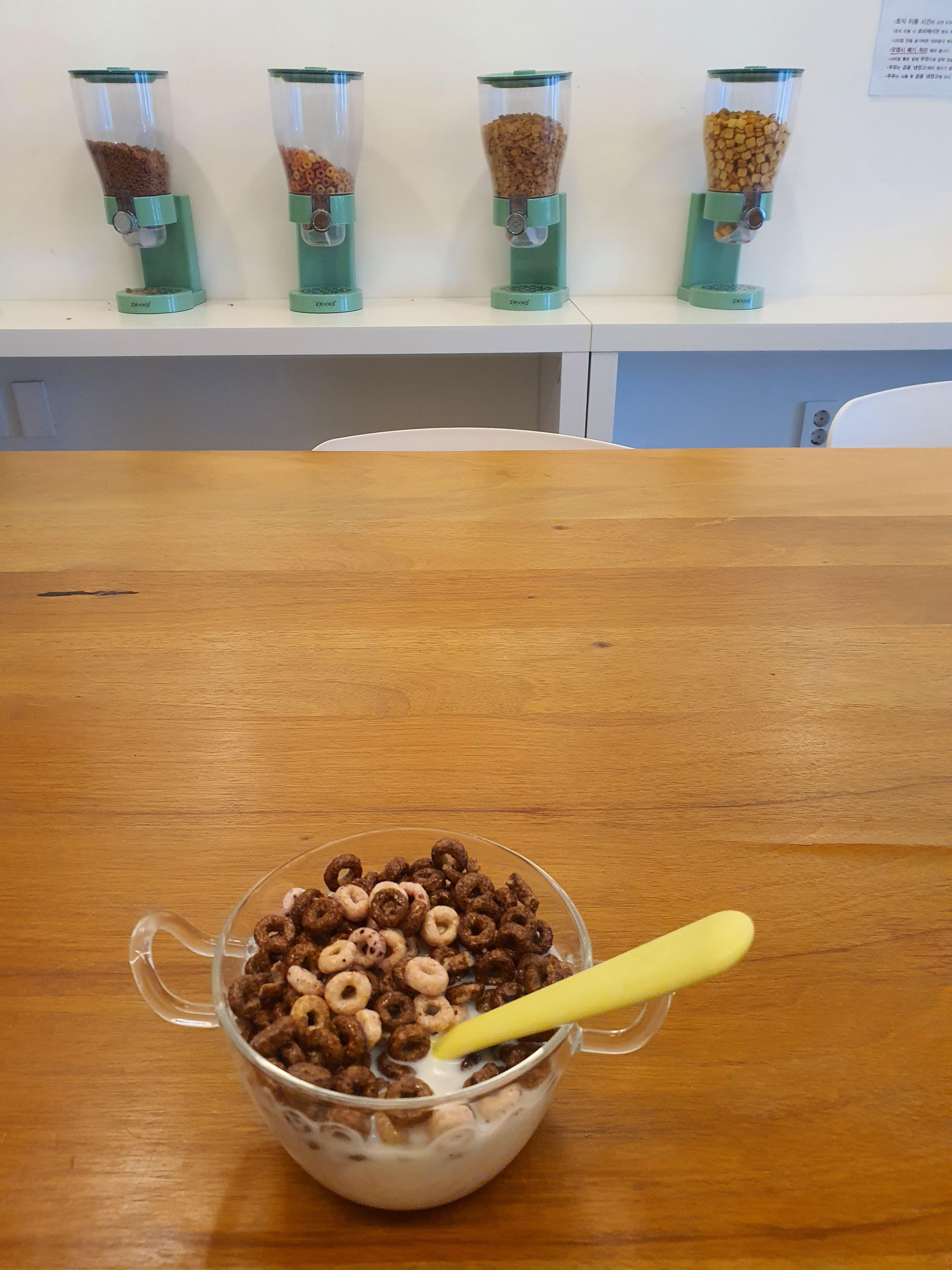 시리얼 종류가 무려 5가지나 되어서 골고루 먹어봤는데 전부 다 맛있었습니다