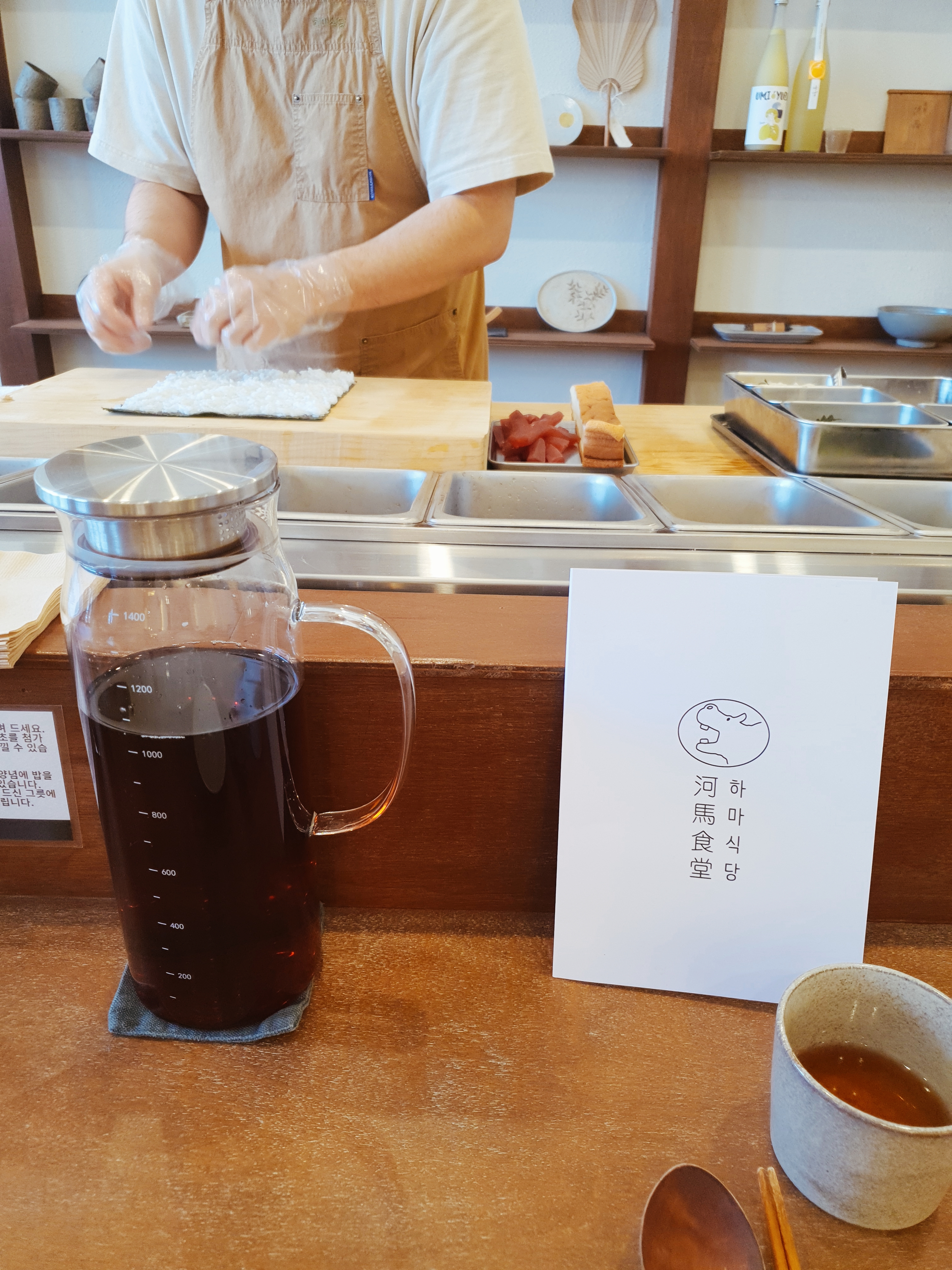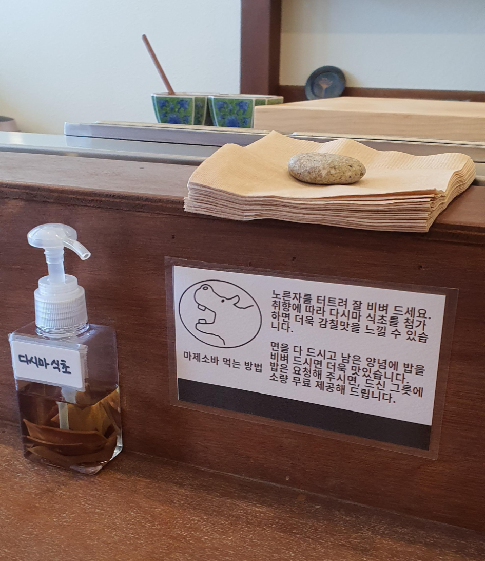 취향에 따라 테이블에 있는 다시마 식초를 곁들여 먹으면