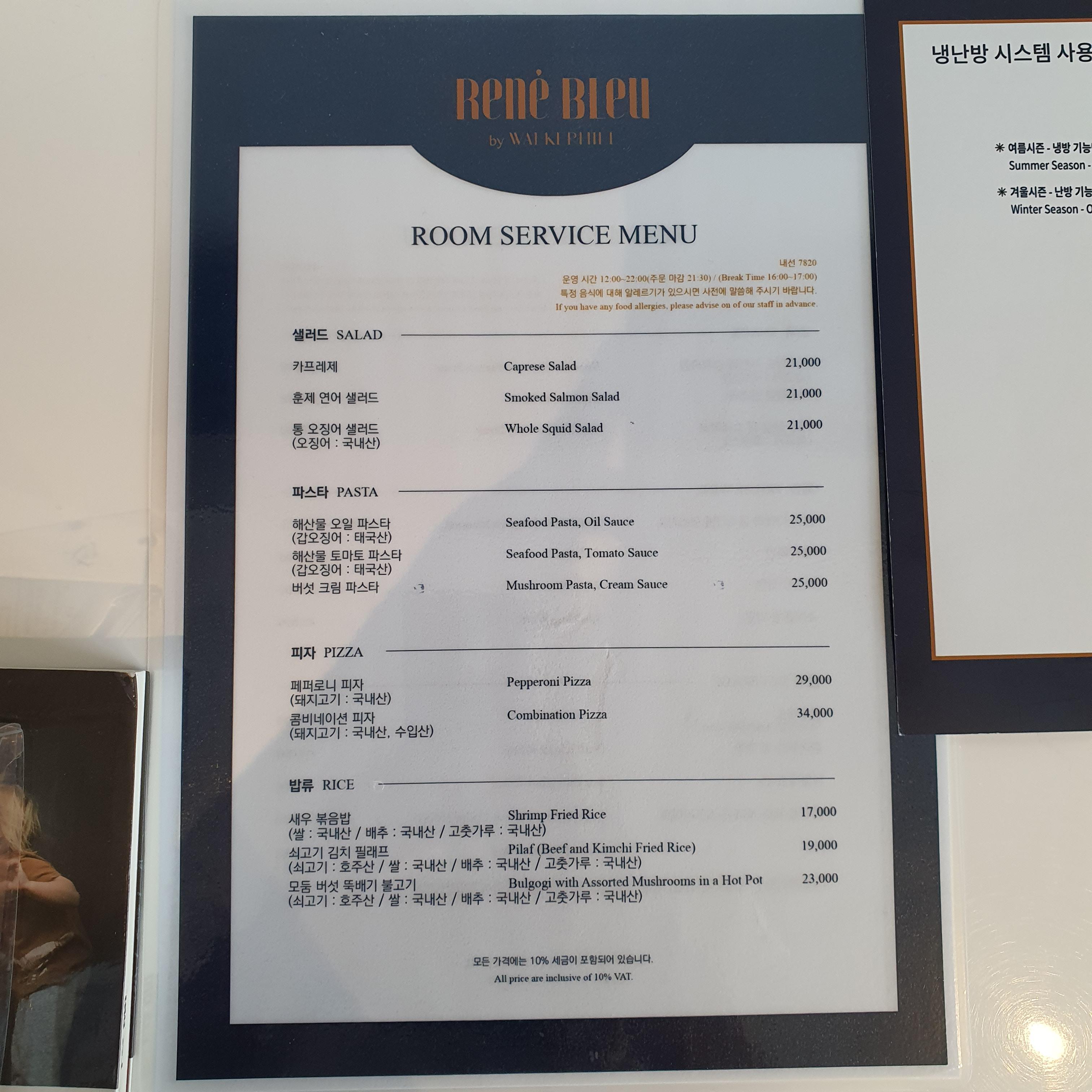 룸서비스 메뉴