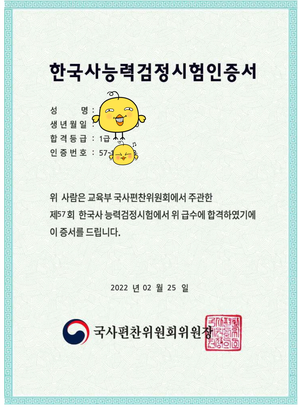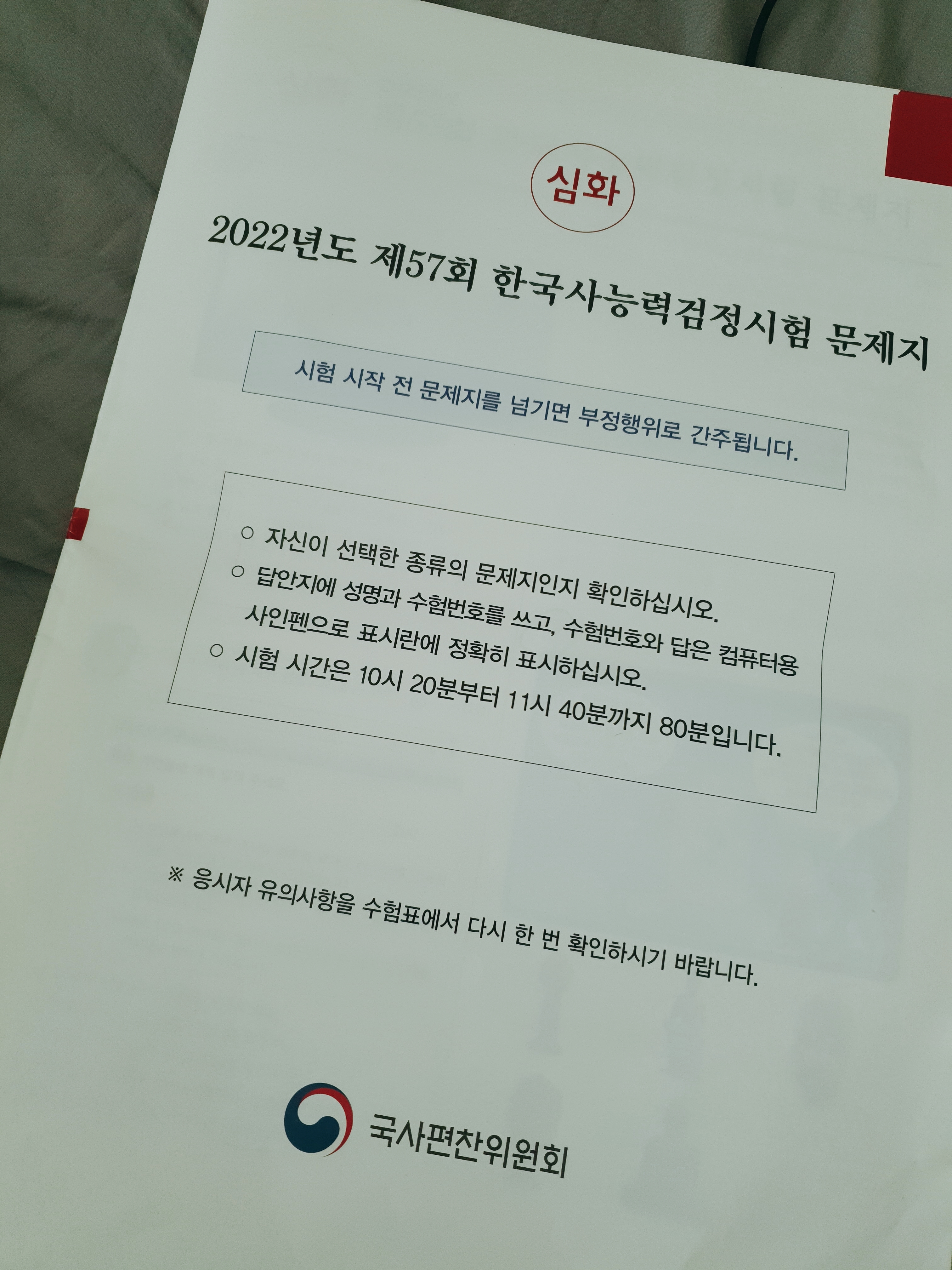 한국사를 이해하고 3급이상으로 합격 정도만 받아도 만족할 것 같았는데