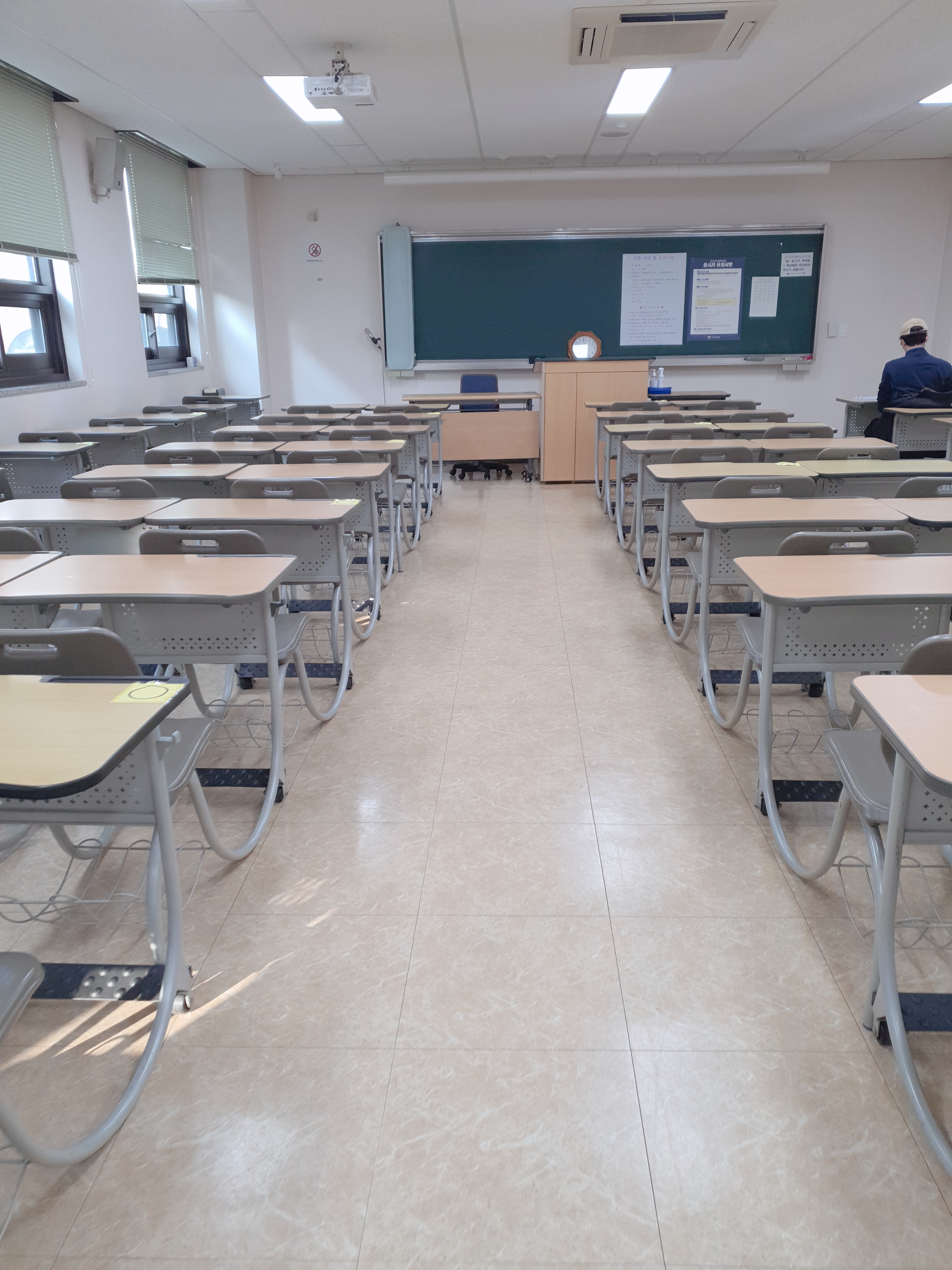 책상도 넓게 떨어져서 여유 있게 거리를 두고 시험을 봤습니다