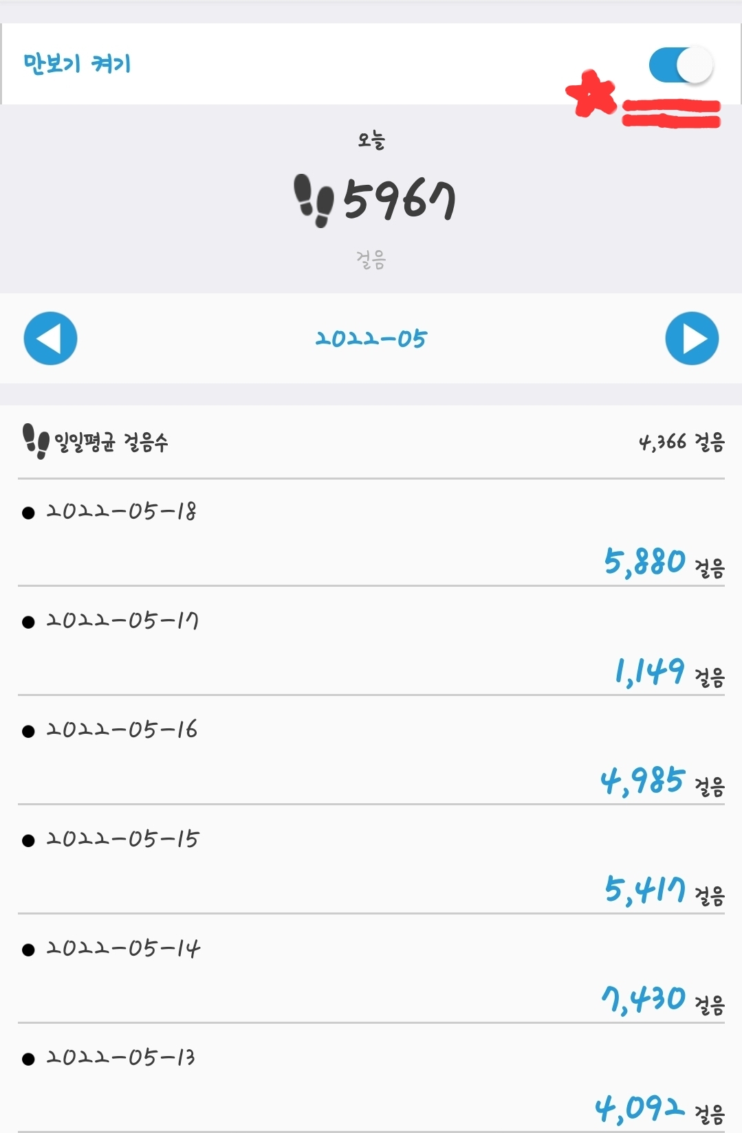 만보기가 켜져 있는지 꼭꼭 확인해야합니다