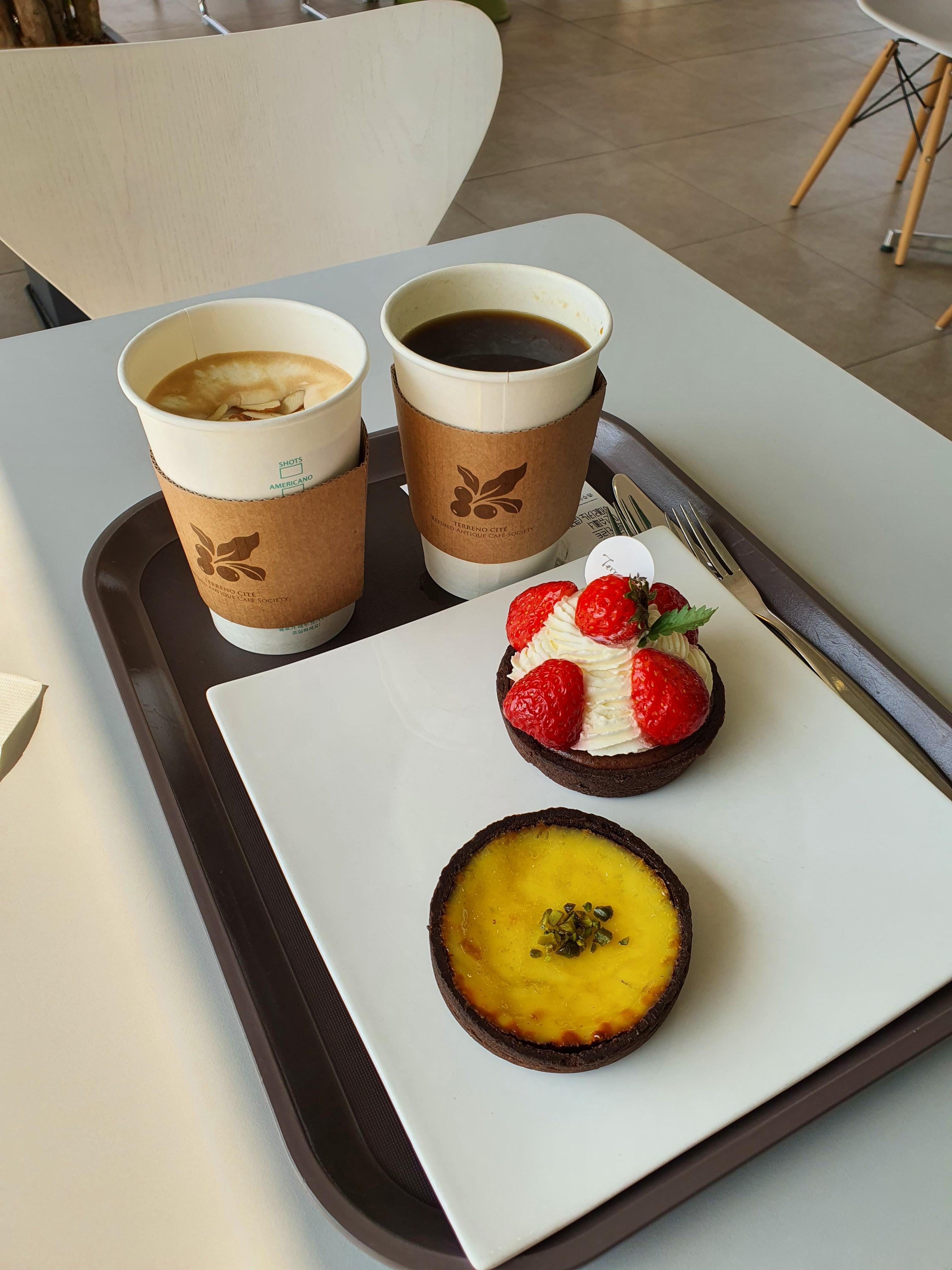 제가 주문한 커피와 타르트들을 들고 2층으로!