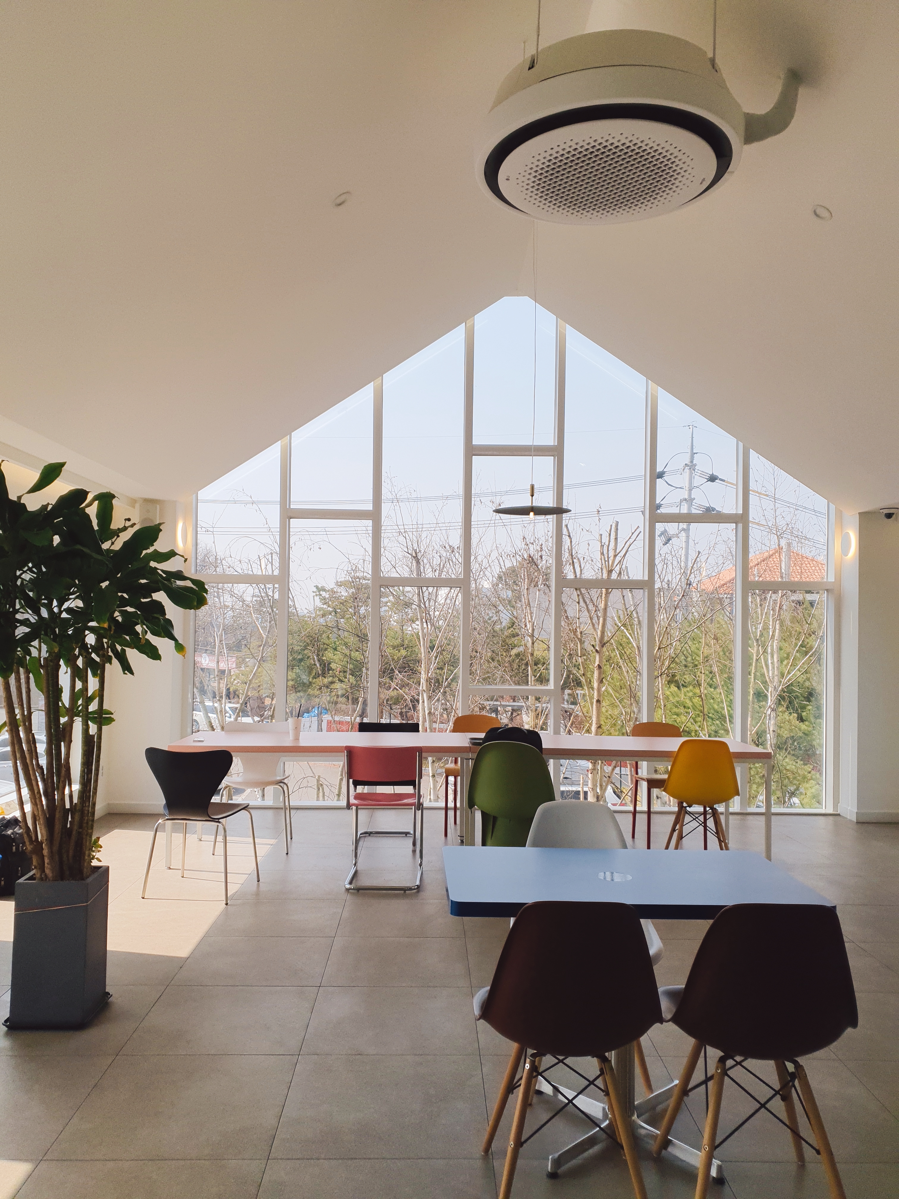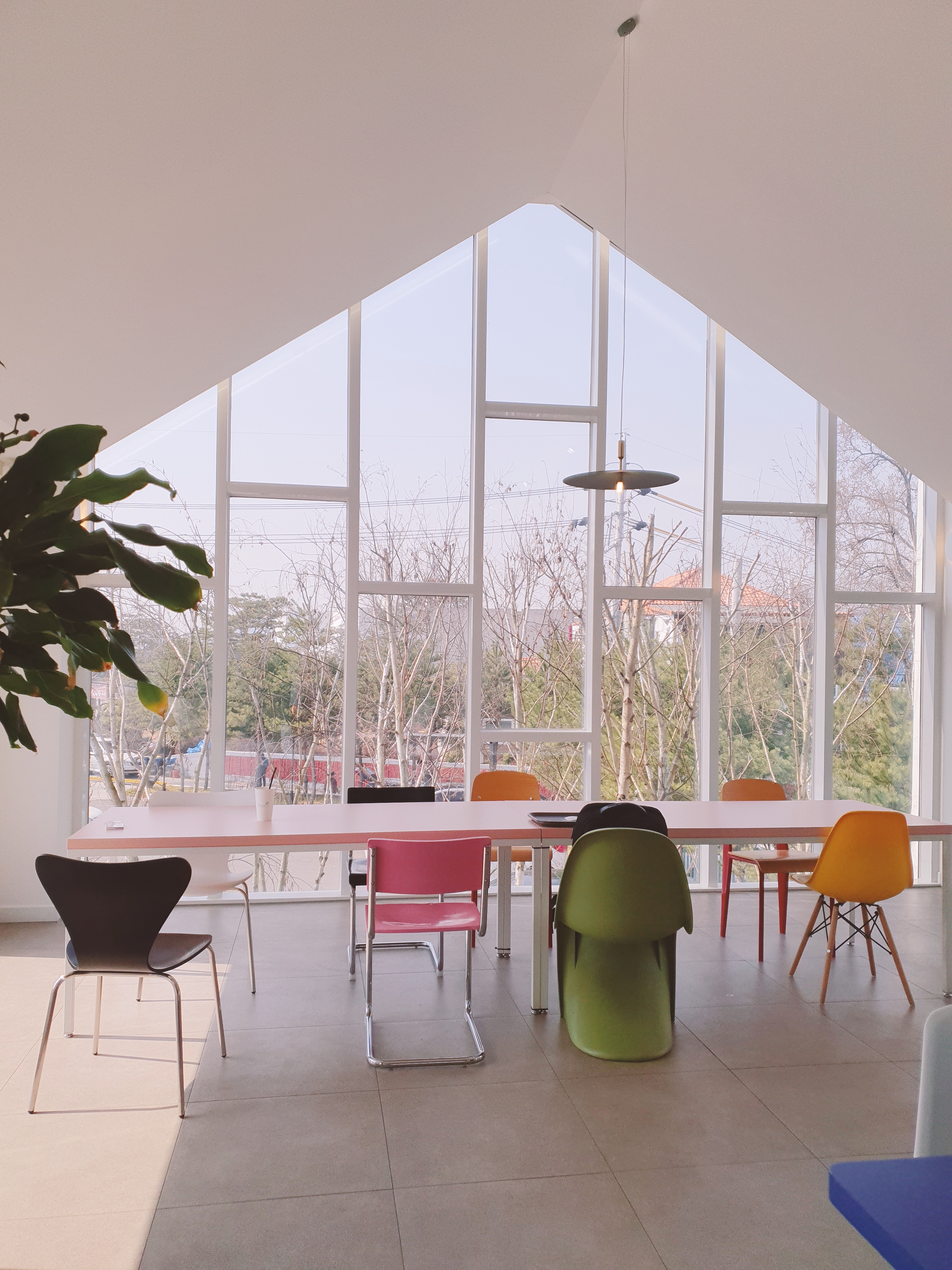 알록달록 의자들과 창밖 뷰!