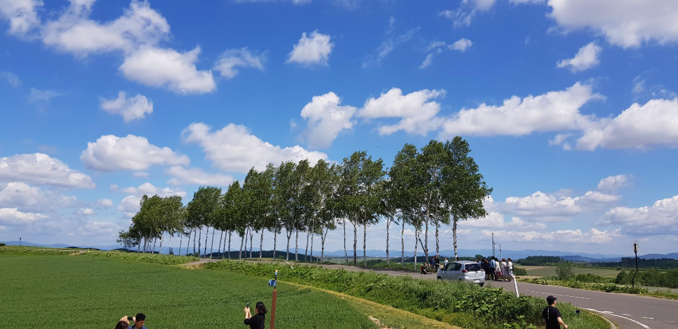 둘쨋날 패치워크로드입니다. 세븐스타(일본담배) 나무를 볼 수 있으며 캔과 메리의 나무(닛산 자동차 CF배경)도 볼 수 있습니다. 진짜 하늘도 이쁘고 윈도우배경화면처럼 사진이 찍혔네요. 자연이 아름다운 삿포로입니다.