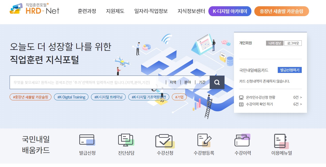 국민 내일 배움 카드는 정부지원사업으로 일을 원하는 구직자(실직자) 및 일을 하고 있는 근로자와 기업의 여러 가지 요구와 필요에 맞게끔 직업능력개발을 할 수 있는 훈련지원 프로그램입니다. 내일 배움이라는 이름에서도 알 수 있듯이 행복한 내일을 위해 배움을 제공하는 그런 정책입니다.