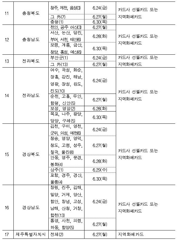1) 선불형 카드 또는 카드형 지역화폐로 지원