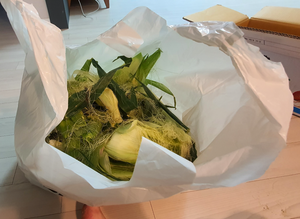 초당 옥수수 정리하기(음식물 쓰레기 아님)